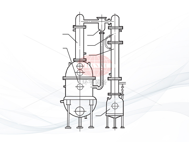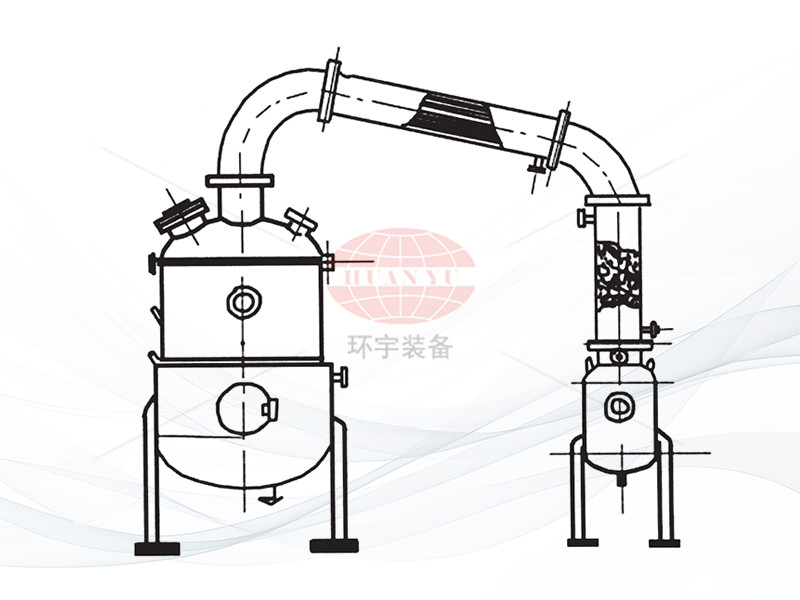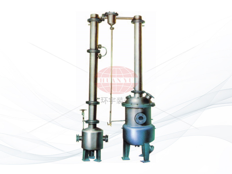本設(shè)備主要包括濃縮罐、第一冷凝器、汽液分離器、第二冷凝器、冷卻器、受液桶六個部件組成,全部由不銹鋼制造。濃縮罐為夾套結(jié)構(gòu),冷凝器為列管式,冷卻器為蛇管式。