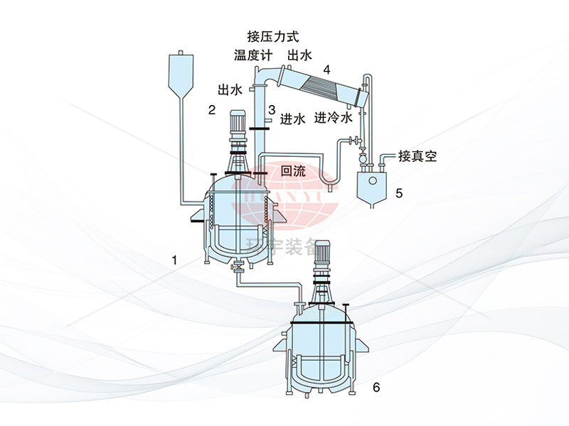 全套設(shè)備由反應(yīng)釜、豎式分餾柱、臥式冷凝器、貯水器、溢油槽、管線(對(duì)稀釜)等組成,全套設(shè)備與物料接觸部分均采用不銹鋼制作。
